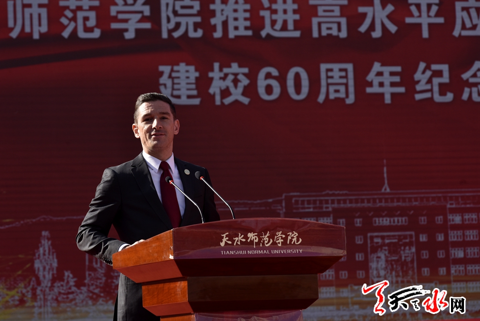 王军代表市四大组织和全市370多万人民向天水师范学院建校60周年表示热烈的祝贺,向全体师生员工及广大校友表示诚挚的问候。他说,60年来,天水与天水师范学院血脉相连,相映生辉,校地双方已经形成了合作发展、水乳交融的良好关系。当前,天水正在抢抓国家“一带一路”、关中平原城市群建设、对接融入成渝经济区等机遇,努力推动高质量发展,决胜全面建成小康社会,加快建设幸福美好新天水和省域副中心城市,希望天水师院进不断提升办学精细化、专业化水平,早日建成西部一流、国内知名、师范特色鲜明的高水平应用型大学的同时,一如既往地关注和支持天水的脱贫攻坚、乡村振兴、文旅融合及产业发展等工作,为推动天水经济社会发展作出新的更大的贡献。他表示,天水市委、市政府将一如既往、义不容辞、更大力度地支持天水师范学院的发展建设,在基础设施、人才引进、科研开发、学科建设、学生创业等方面,为天水师范学院创造更好的环境、提供更优的服务,努力推动大学与城市互利共赢、共同发展。