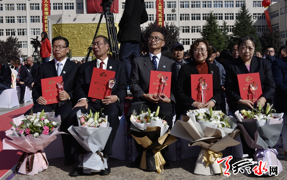 省人大常委会副主任吴明明,副省长李沛兴,省政协副主席、天水市委书记王锐,省政协原副主席张津梁出席纪念大会并为“天水师范学院守正•奋进特别贡献奖”获得者张鸿勋教授、雒江生教授、樊文礼高级实验师、何万生教授、呼丽萍研究员颁奖。