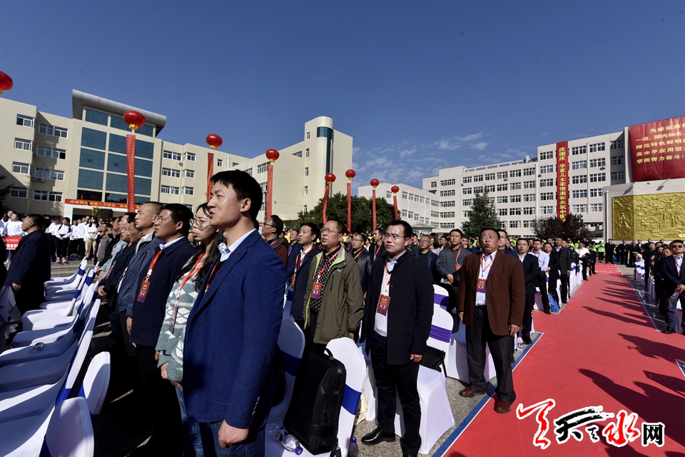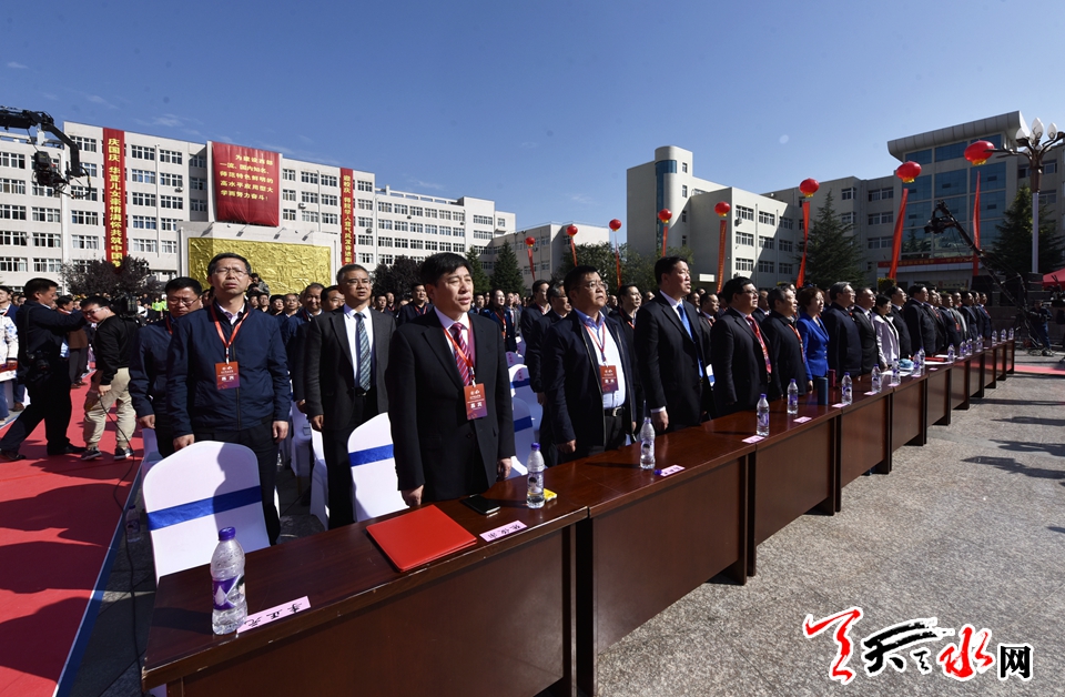 省人大常委会教科文卫工作委员会主任、省委“不忘初心、牢记使命”主题教育第六巡回指导组组长范鹏,省人大常委会民族侨务委员会主任陈保平,省教育厅厅长王海燕,陕西省社科联主席甘晖,省政府副秘书长王锋 ,教育部学校规划建设发展中心创新发展处副处长王丽萍 ,天水市人大常委会主任蒋晓强,天水市委副书记、市长王军,天水市政协主席张明泰等出席纪念大会。天水师范学院党委书记李正元主持纪念大会。