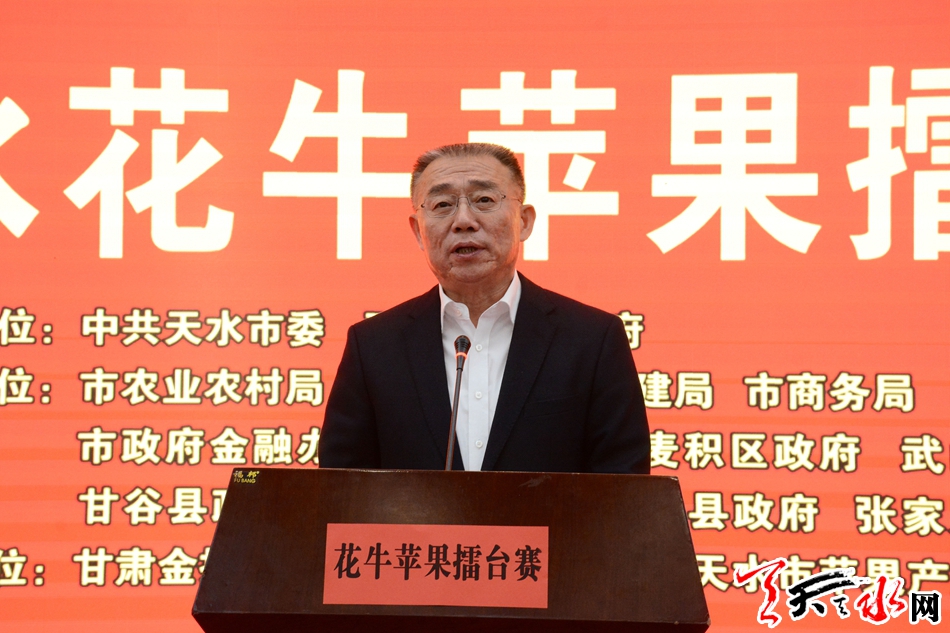 活动中,市商务局负责同志宣读了《天水市关于奖励2019年度农产品销售优秀电商企业的实施办法》,专项收储贷款农业龙头企业代表作了发言,3家行业协会宣读了花牛苹果爱心认购倡议书。
