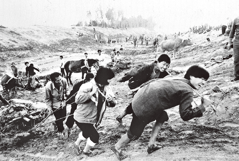 1946年,中国共产党在山东菏泽领导成立了冀鲁豫解放区黄河水利委员会这一人民治黄机构。自那时起,在中国共产党领导下,黄河治理保护工作不断取得重大成就,创造了伏秋大汛岁岁安澜的奇迹。图为山东省淄博市木李乡(今木李镇)农民在治黄工地上劳动。 新华社发