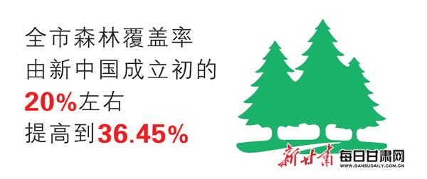 天水市坚持把生态文明建设摆在突出位置,生态环境持续改善。持续开展大规模国土绿化行动,累计造林绿化102.66万亩,道路绿化6910.9公里,森林抚育46.7万亩,全市森林覆盖率由新中国成立初的20%左右提高到36.45%,城区园林绿化面积1947.4公顷,城市建成区绿地率、绿化覆盖率分别达到34.62%、38.95%,近5年空气质量优良天数保持在300天以上。