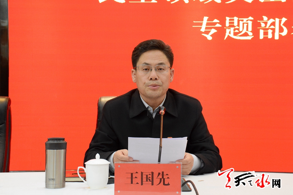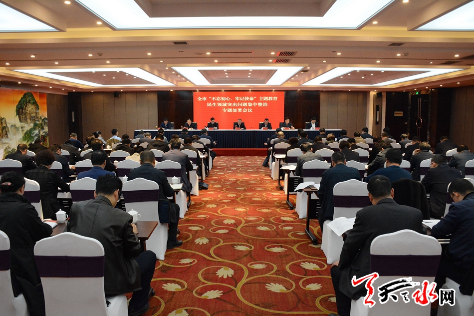天天天水网讯【全媒体记者王晓馨】10月16日下午,全市“不忘初心、牢记使命”主题教育中开展民生领域突出问题集中整治行动专题部署会议召开。市委书记、市委主题教育领导小组组长王锐在会上强调,全市各级各部门要深入贯彻落实习近平总书记关于主题教育专项整治的一系列重要论述和指示批示精神,按照中央和省、市委的部署要求,提高政治站位,凝聚思想共识,聚焦民生领域的顽症痼疾,正视问题,刀刃向内,以攻坚克难的勇气,集中优势兵力坚决打赢打好集中整治行动“攻坚战”,切实提升人民群众获得感、幸福感和满意度。