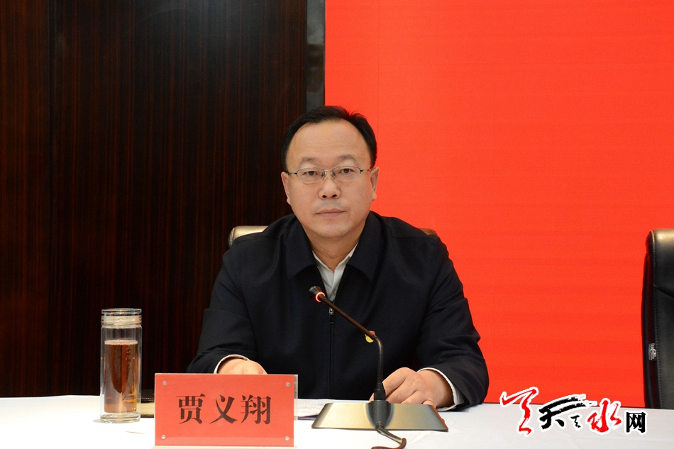 市委常委、组织部部长、市委主题教育领导小组副组长、办公室主任贾义翔宣读《中共天水市委“不忘初心、牢记使命”主题教育领导小组关于开展民生领域突出问题集中整治行动的通知》。