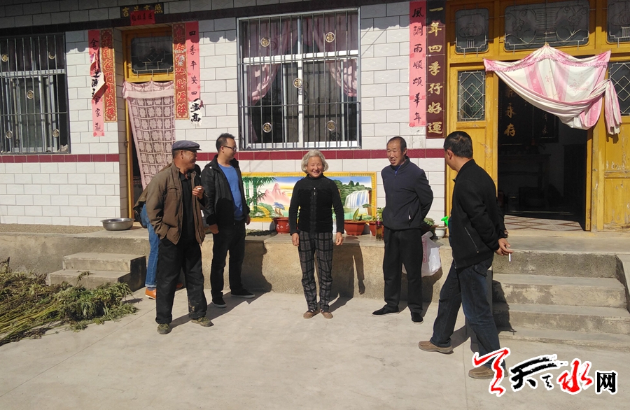 10月17日,清水县山门镇旺兴村驻村帮扶工作队、驻村干部和村组干部,认真学习贯彻《2019天水市扶贫日活动方案》,坚定攻坚克难,打赢脱贫攻坚战的信心,深入到农户家和田间地头,进一步宣传脱贫退出政策。记者 郭隆洲 摄