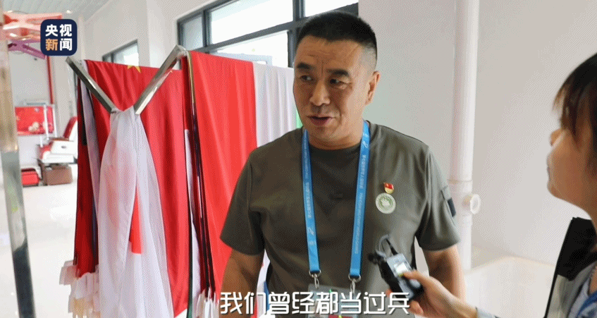 退役老兵王飞鹏说:“我们都曾经当过兵,这次能为军运会熨烫各国国旗,还能为世界各国现役军人运动员服务,内心无比自豪!”