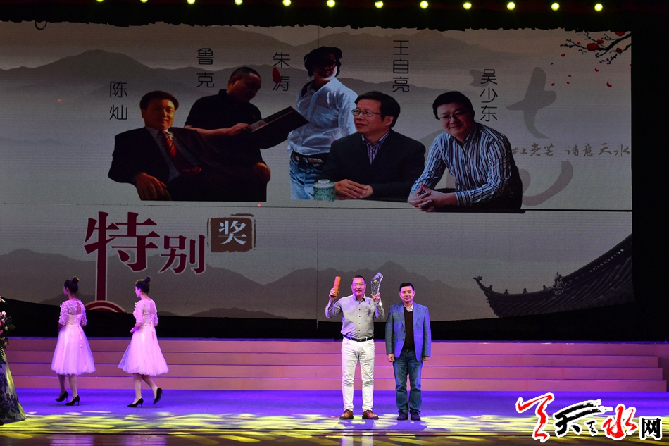 天天天水网讯【全媒体记者冯丽娟】10月17日晚,秦州剧院灯光璀璨,诗意弥漫。第四届“中国天水·李杜诗歌奖”颁奖典礼在这里盛大举行。