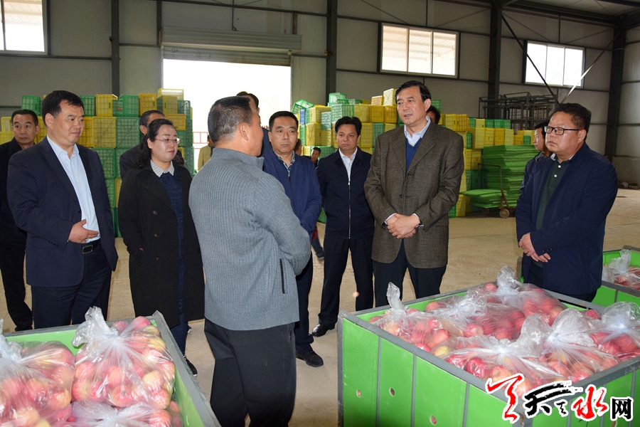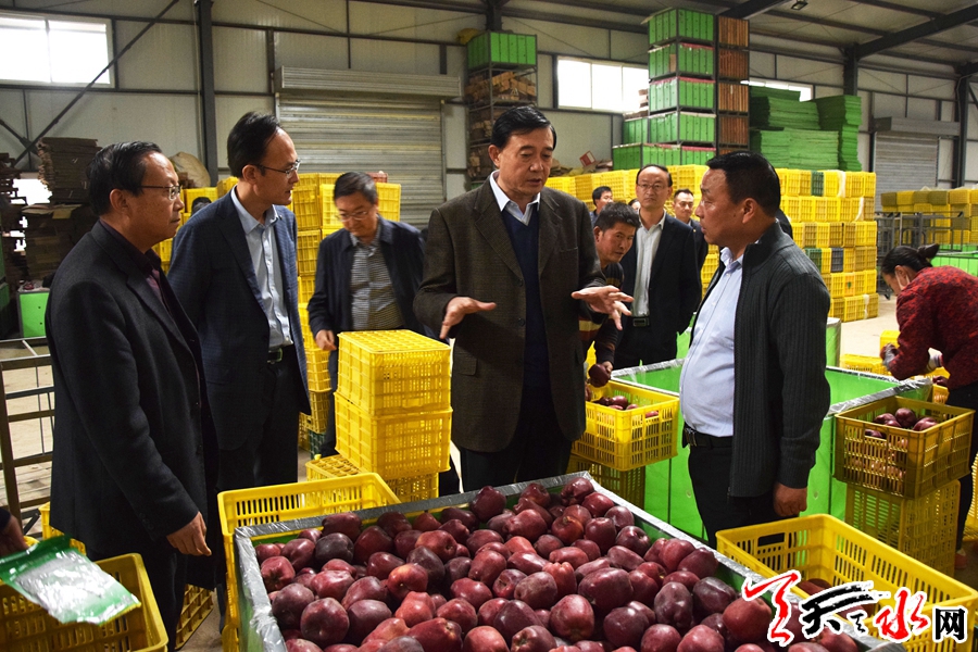 天天天水网讯【全媒体记者冯丽娟】10月22日,天水市领导赵卫东带领市农业农村局、金融办、金控公司、花牛苹果协会及驻市相关金融机构负责人,就金融支持苹果收储工作进行调研。他强调,要提高思想认识,把握市场,把准价格,把好质量,把优环境,加大执行力度,让苹果收储专项贷款贷及时、用到位,确保贫困群众丰产丰收、实现产销双赢。
