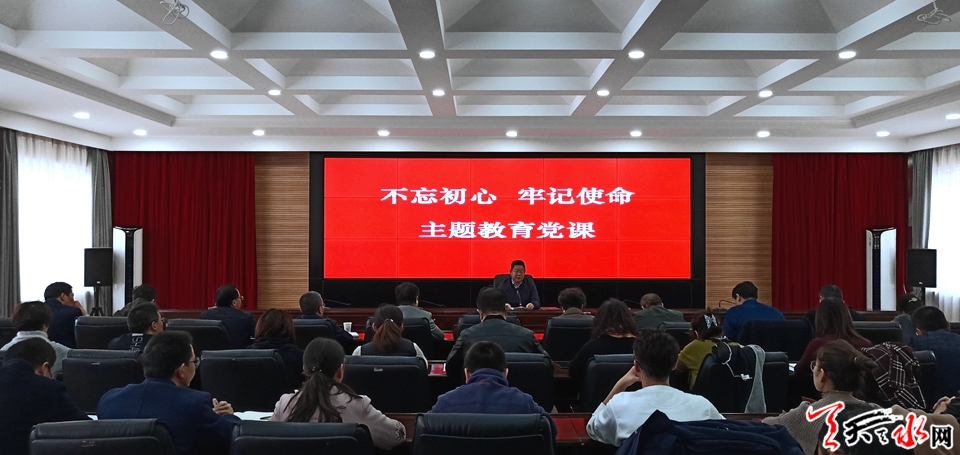 天天天水网讯【记者 张文都】10月24日,市委常委、宣传部部长张建杰以《牢记初心使命, 勇于担当作为, 努力推动新时代宣传思想工作守正创新》为主题,作“不忘初心、牢记使命”主题教育专题党课辅导。市委宣传部、市委网信办、市文明办班子成员和机关党员聆听党课。