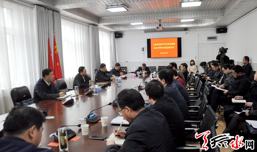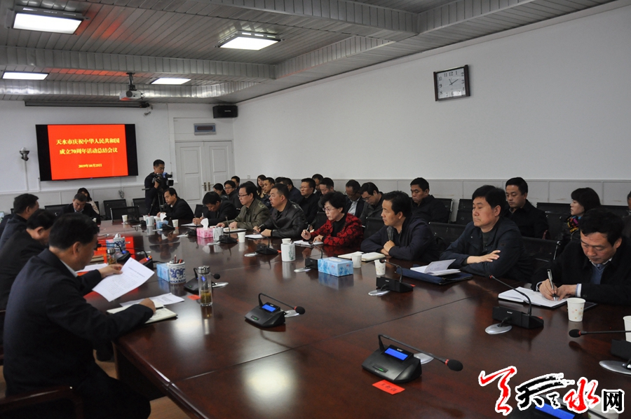 天天天水网讯【记者刘晓亚】10月25日,天水市召开庆祝中华人民共和国成立70周年活动总结会议,通报全市庆祝中华人民共和国成立70周年活动情况,梳理总结活动中涌现出来的好做法好经验,巩固和拓展庆祝活动成果。