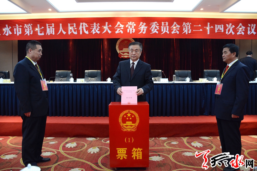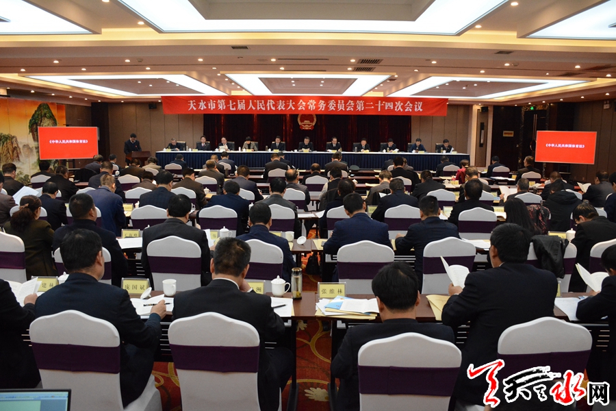 天天天水网讯【全媒体记者马放】10月28日,市七届人大常委会第二十四次会议召开。市人大常委会主任蒋晓强,市人大常委会副主任安志宏、宋建平分别主持第一、二、三次全体会议。出席会议的常委会组成人员符合法定人数。