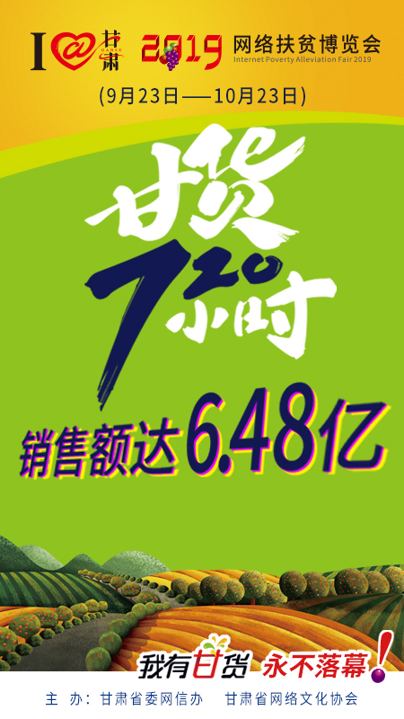 到10月23日,通过“直播甘肃,助力扶贫”线上推广宣传、“网拍甘肃,助力扶贫”线上线下共同推广宣传、甘肃省优质淘宝店铺产品销售等系列活动,带动销售全省各类农特产品64828万元。其中,头条话题、抖音直播及头条三农合伙人扶贫带动销售1140万元;111家优质淘宝店铺累计销售1485万元;网络义拍总额超过120万元,义拍累计溢价达42万元,溢价部分全部用于扶持贫困户开展再生产和技术培训;在省级活动的带动下,全省各市州、各县区积极组织开展了“I@甘肃 我有甘货”苹果丰收节、大宗农产品认购、万名干部助推电商扶贫、我为“甘货”代言、宣传推介会、消费扶贫、东西协作定点帮扶、爱心认购、产品擂台赛、精英挑战赛等形式多样的系列活动,累计带动销售“甘货”62083万元。