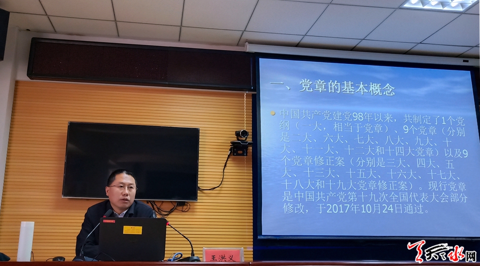 党课辅导中,王洪义围绕党章的基本概念、中国共产党历次党章的制定及修正情况概述、党章对党员标准的制定及修正简况作了解读。