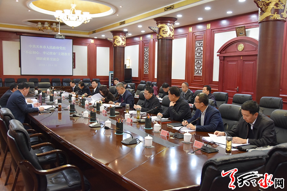 天天天水网讯【全媒体记者吴丽娜】10月30日上午,市政府党组召开“不忘初心、牢记使命”主题教育调研成果交流会。