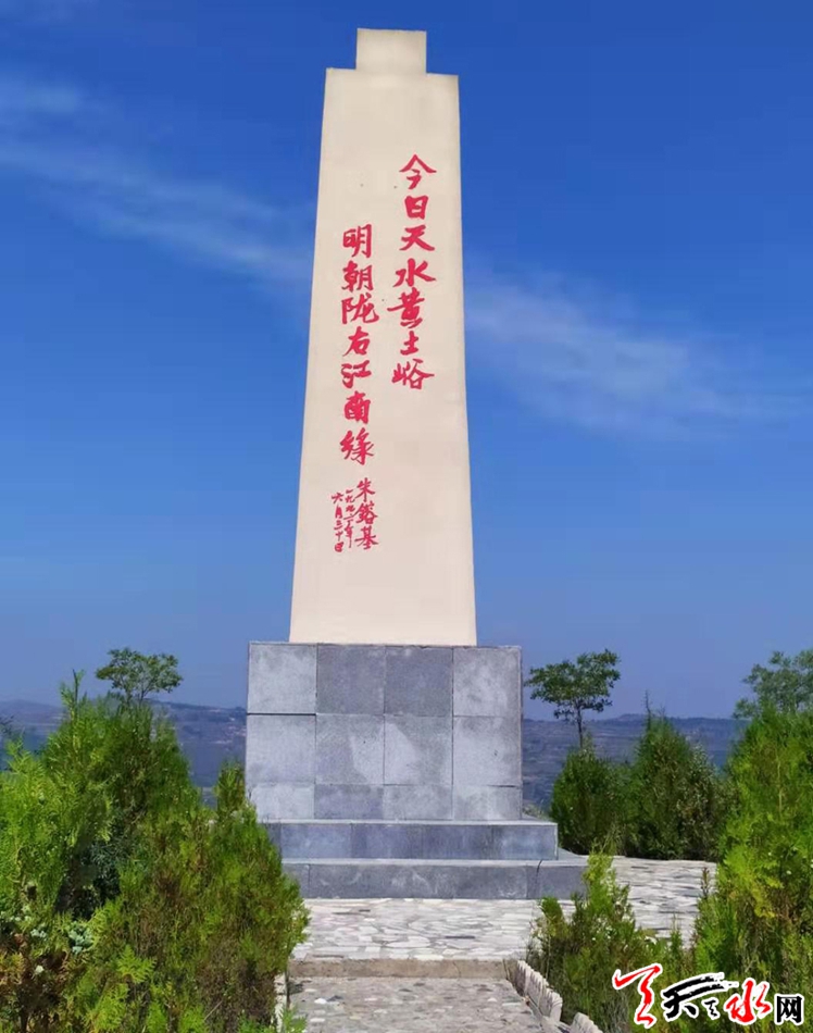 1996年6月29日,时任国务院副总理的朱镕基同志视察放牛村时,对放牛村山地建园、帮助群众增收的做法给予了高度评价。并欣然提笔写下“今日天水黄土峪,明朝陇右江南绿”的题词和“放牛村”三个大字。朱镕基意味深长地对全体村民讲:“老乡们,刚才看了你们的果树,我心里非常高兴,你们的路子走对了!”同时,朱镕基出谋划策,给老乡们讲了许多致富的办法。1996年8月,放牛村被全国造林绿化委员会授予“全国造林绿化千佳村”称号。总理的点赞、国家的肯定使得放牛人看到了脱贫希望,坚定了发展信心,也为秦州区乃至全市林果业的发展鼓足了精气神。