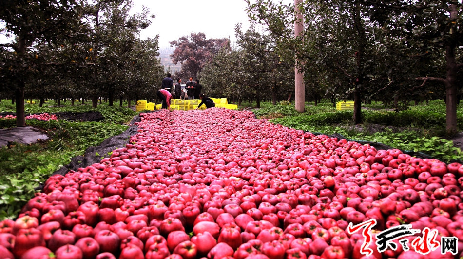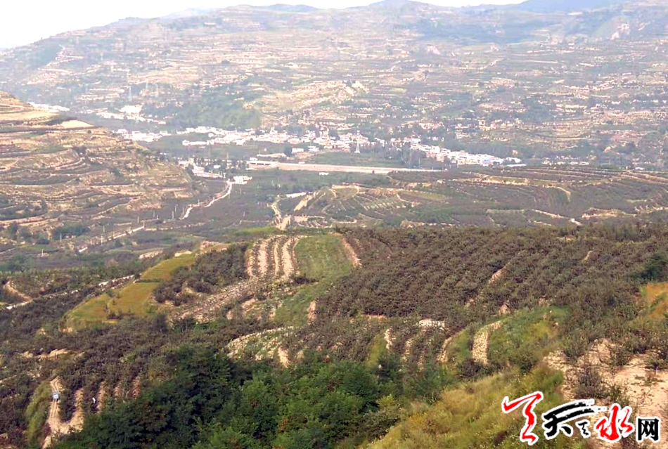 苹果丰收的季节,从山顶举目望去,放牛村几乎被郁郁葱葱的果园包围着。在果农的精心管理下,苹果树长势旺盛,累累果实挂满了枝头。发展绿色生态产业,放牛村的青山绿水已经成为了乡村振兴的金山银山。如今,放牛村的种植业已经占到全村耕地面积的85.8%,2018年全村人均纯收入1.1万元,林果产业户均收入增加到8万元以上。依托放牛村的成功经验,秦州区以放牛村为辐射重点,打造培育了藉河川道放牛片区果品产业示范基地,带动周边16个村发展林果产业,该片区已建成果园3.8万亩,带动收益人口1.5万人。截止目前,全区已建成果园总面积60.12万亩,花牛苹果、秦州大樱桃等林果业已经成为秦州区名副其实的特色富民产业。