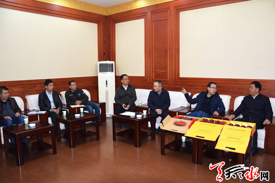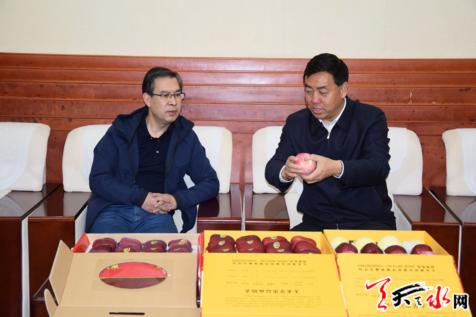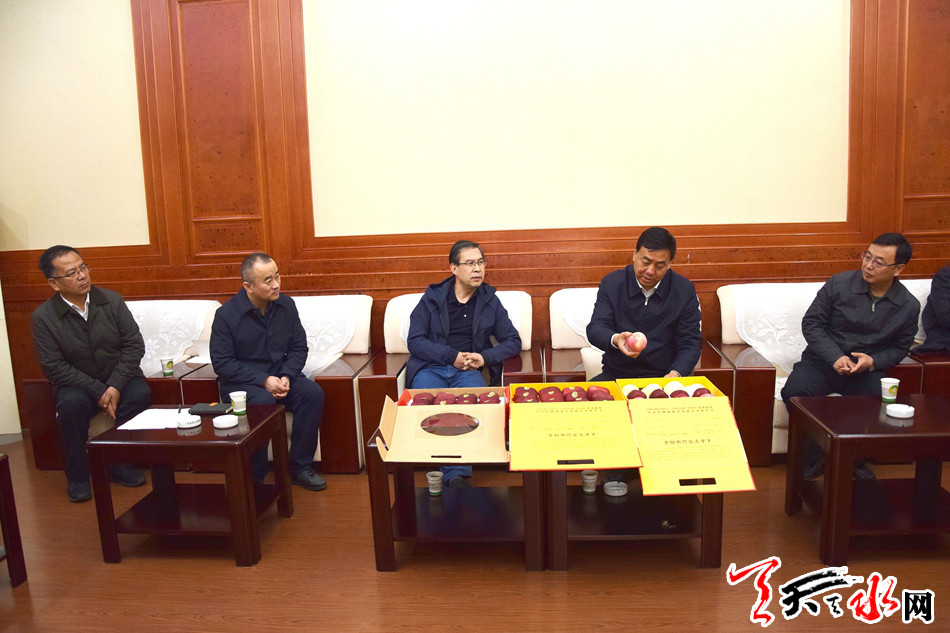11月2日下午,副市长逯克宗还与甘肃省邮政分公司副总经理逯守库就花牛苹果销售等事宜进行座谈协商。逯克宗表示,天水市将认真研究部署、精心组织策划,保质保量提供花牛苹果,确保花牛苹果顺利销售。市委、市政府将一如既往地关注支持中国邮政事业的改革发展,进一步加强合作,开拓创新,互助共赢。