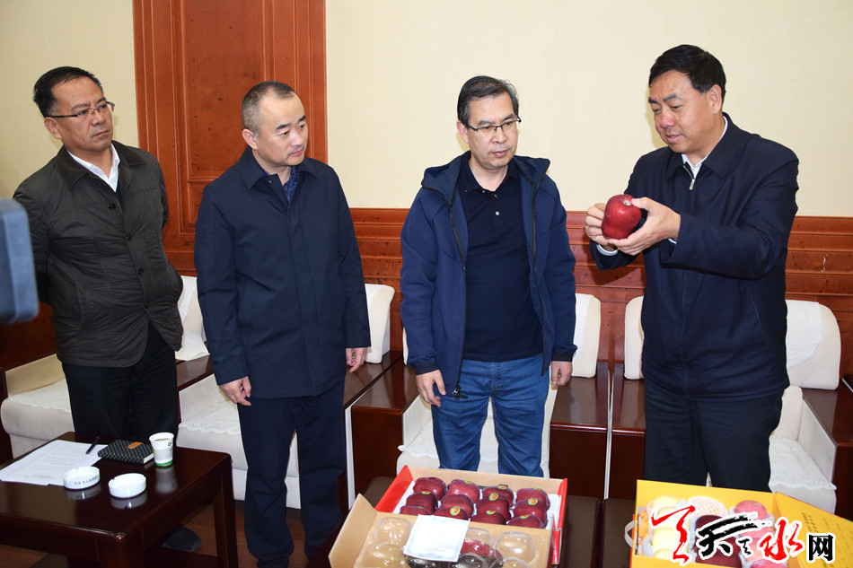逯守库表示,中国邮政集团将组织全体员工广泛开展消费扶贫,爱心认购花牛苹果,切实履行国企社会责任,助力天水的脱贫攻坚工作。