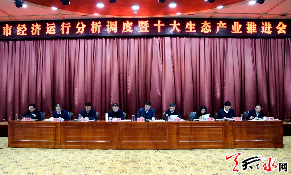 天天天水网讯【全媒体记者吴丽娜】11月6日,全市经济运行分析调度暨十大生态产业发展推进会召开。市委副书记、市长王军主持会议并讲话。他强调,要把思想和行动统一到中央、省、市促进经济稳定增长的部署要求上来,聚焦经济运行堵点难点问题,奋力攻坚冲刺,确保今年经济社会发展各项目标任务顺利完成;对标十大生态产业发展短板和差距,坚持重点突破,全力推动十大生态产业发力见效。