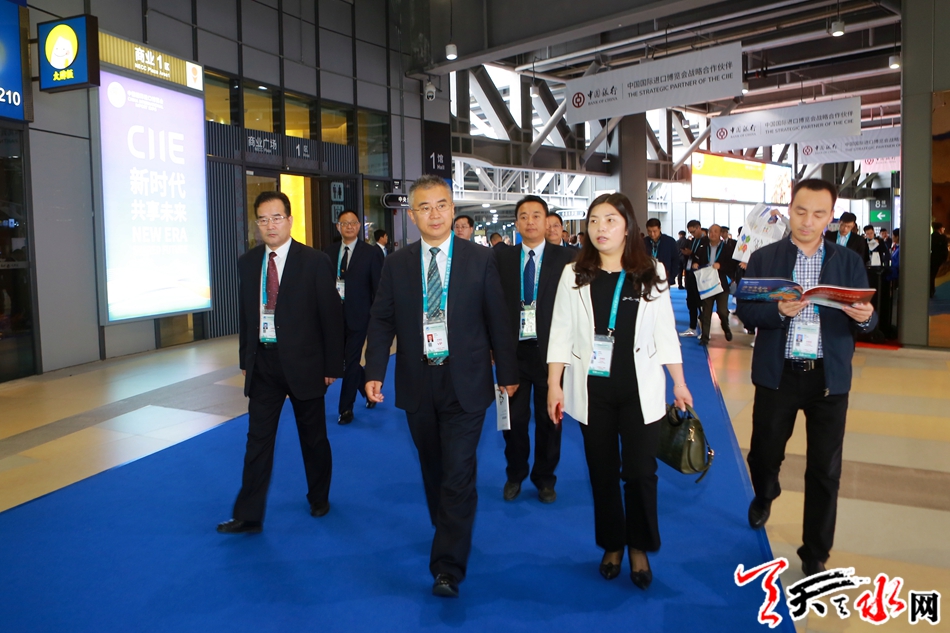 天天天水网讯【全媒体记者马放】第二届中国国际进口博览会11月5日在上海开幕。市委常委、常务副市长赵四辈带领市商务局、市发改委、市文旅局、市科技局等部门负责人、县区有关单位负责同志和相关企业代表参会。