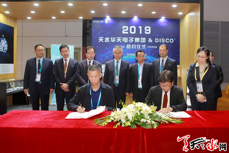 天天天水网上海电【全媒体记者马放】11月6日,在第二届中国国际进口博览会上,天水华天电子集团和先进太平洋(新加坡)有限公司、日本迪思科科技有限公司分别签署了设备进口合同。