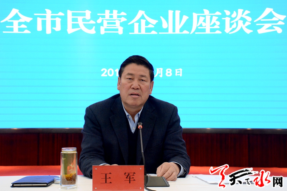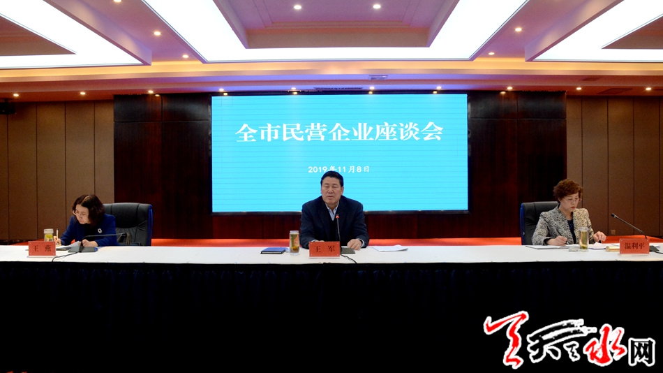 天天天水网讯【全媒体记者吴丽娜】11月8日下午,全市民营企业座谈会召开。市委副书记、市长王军出席会议并讲话。他强调,要毫不动摇支持民营经济发展,全面落实中央和省、市各项支持政策,积极主动做好民营企业纾难解困工作,全力推动民营经济持续健康发展。