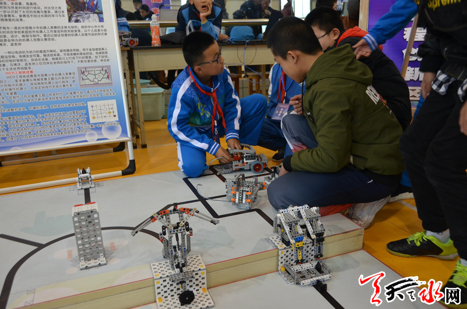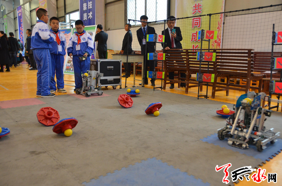 天水市第三届青少年科技创新大赛暨机器人竟赛由市科协、市教育局主办。大赛为期两天,主要活动内容有:青少年学生和科技辅导员创新项目终评展示;科技创新教育论坛;高校人工智能联盟创意空间;校园科学文化展示;体验、互动、观摩活动。其中参加终评展示活动的项目共484项,包含学生创新成果项目96项;少儿科学幻想绘画300幅;科技实践活动12项;科学DW作品30项;科技辅导员创新项目46项。参赛师生人数达363人。第三届青少年机器人竞赛是基于每年一度的中国青少年机器人竞赛的主题和规则,组织选拔在全市学校中小学生机器人爱好者组建了25支竞赛队伍,共有84名师生参赛,主要进行机器人综合技能比赛、FLL机器人挑战赛、VEX机器人工程挑战赛、WER工程创新赛、创意工程挑战赛、机器人创意比赛和校园机器人文化展示与交流活动。
