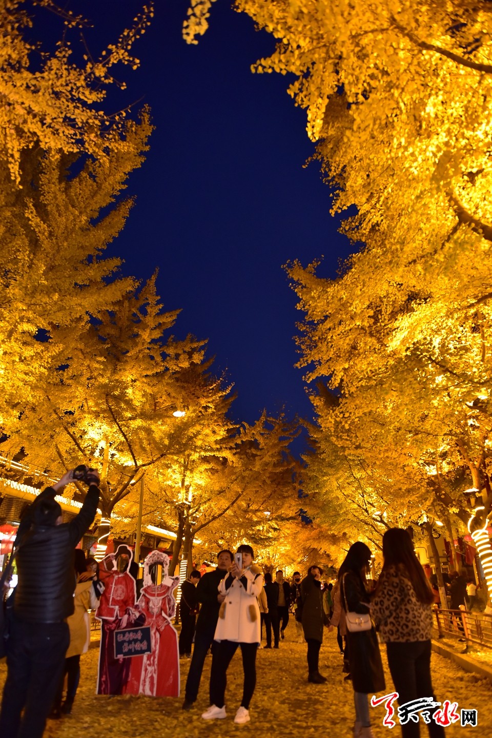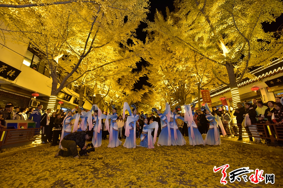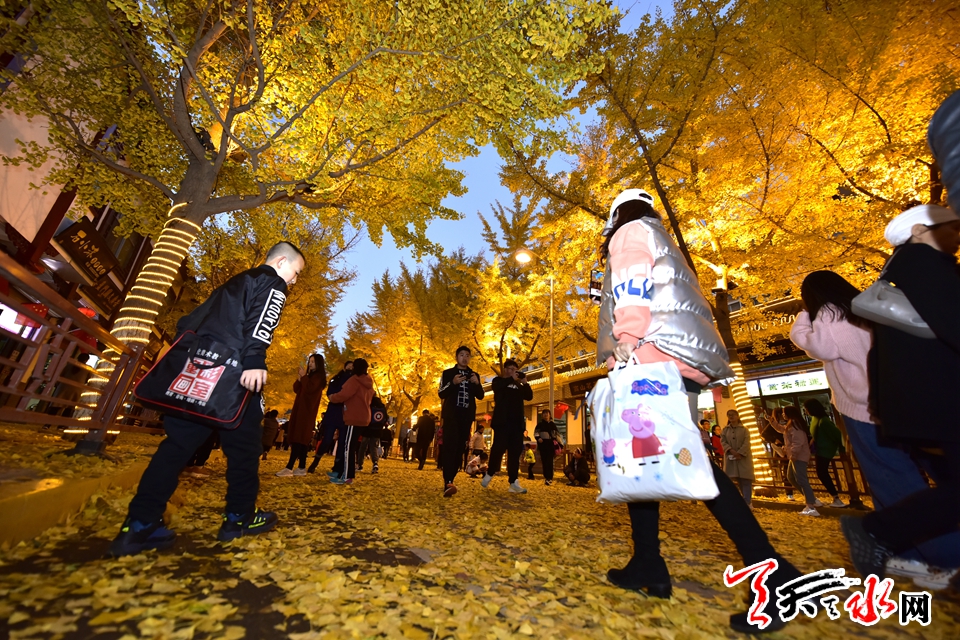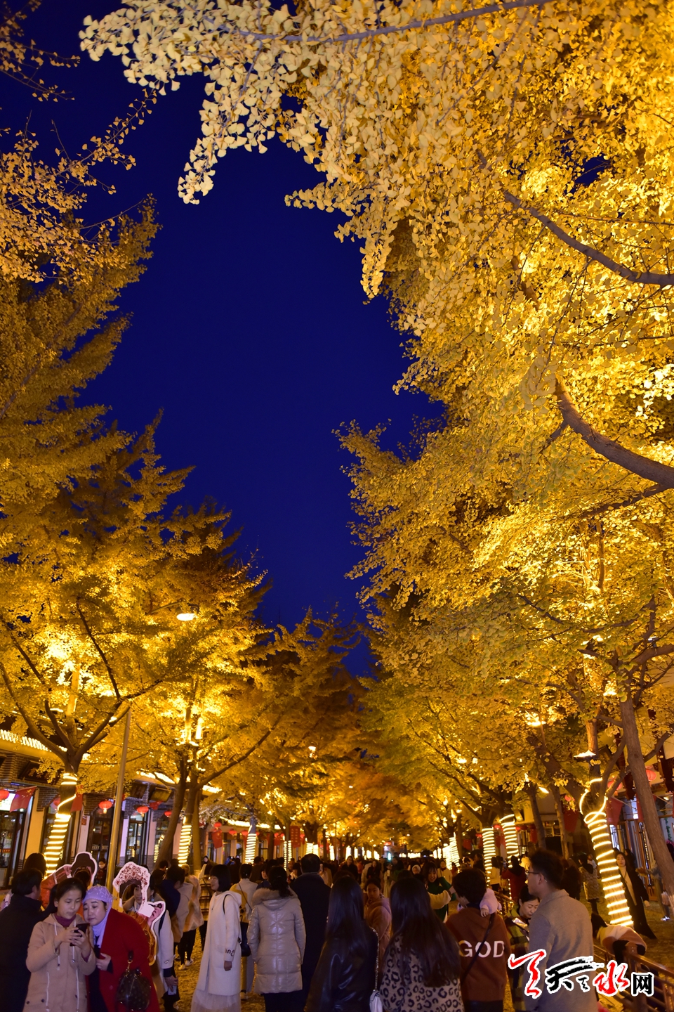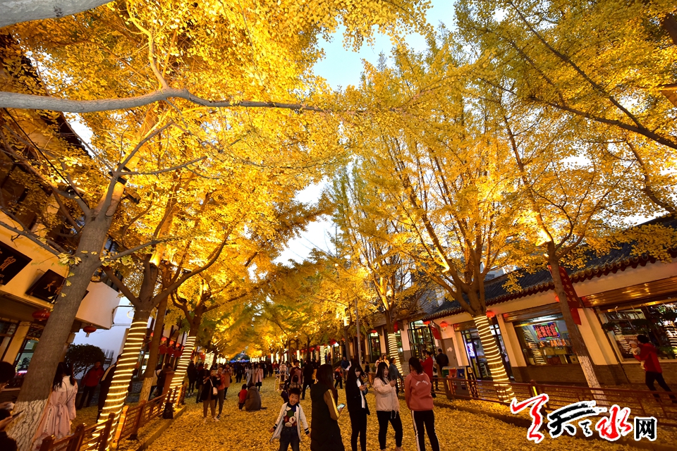 立冬之初,天水市秦州区的“网红”街一路飘黄又迎来了它的狂欢期,从白天至晚上,这里黄叶与自拍共舞,欢歌同开心齐飞。