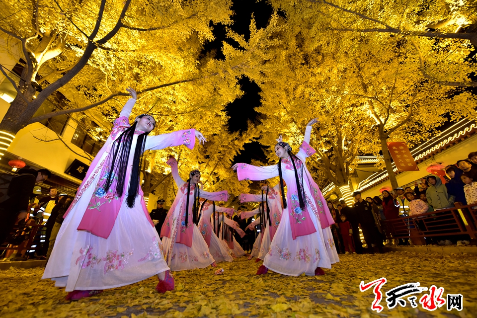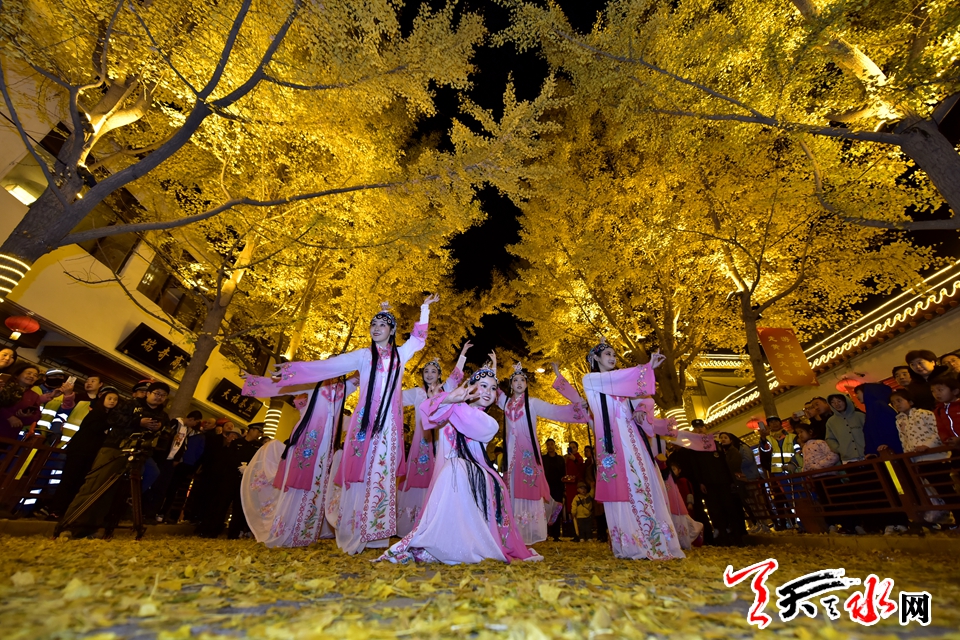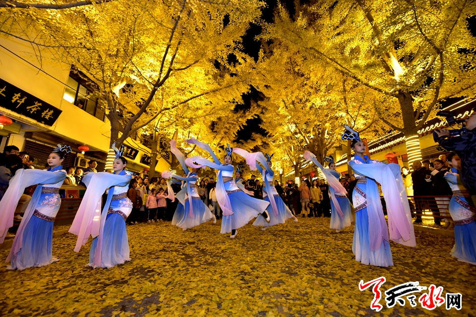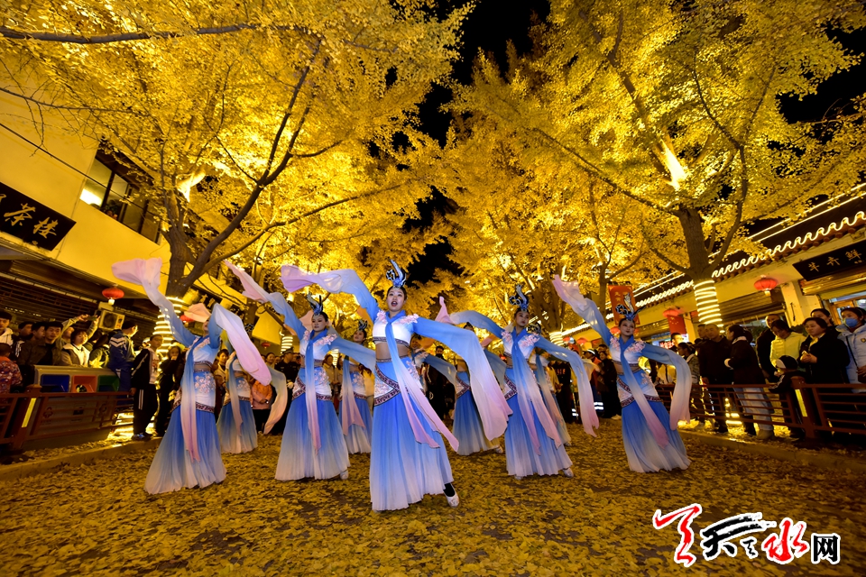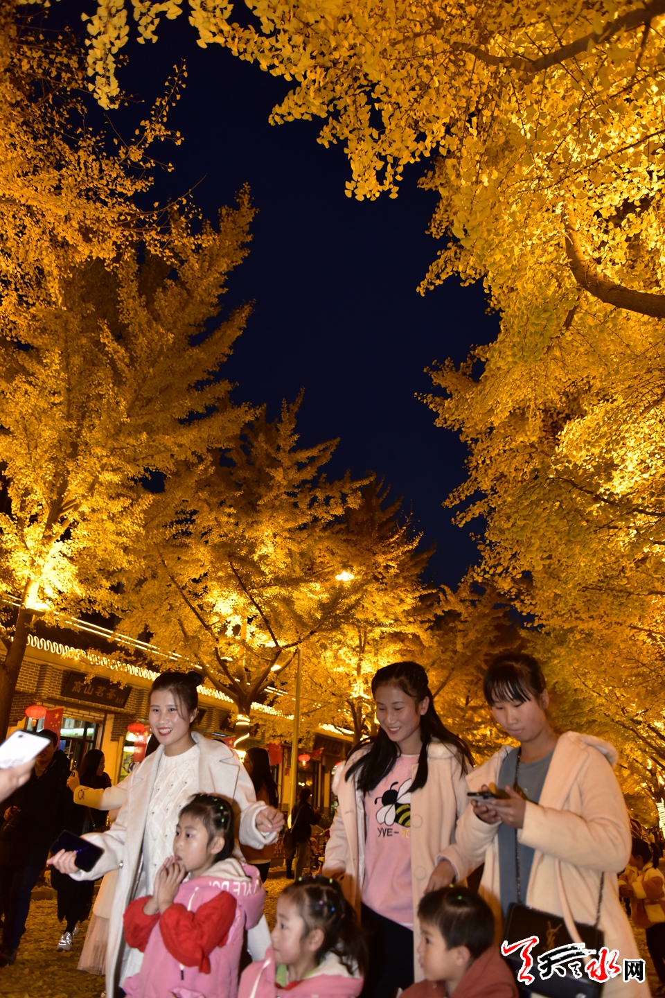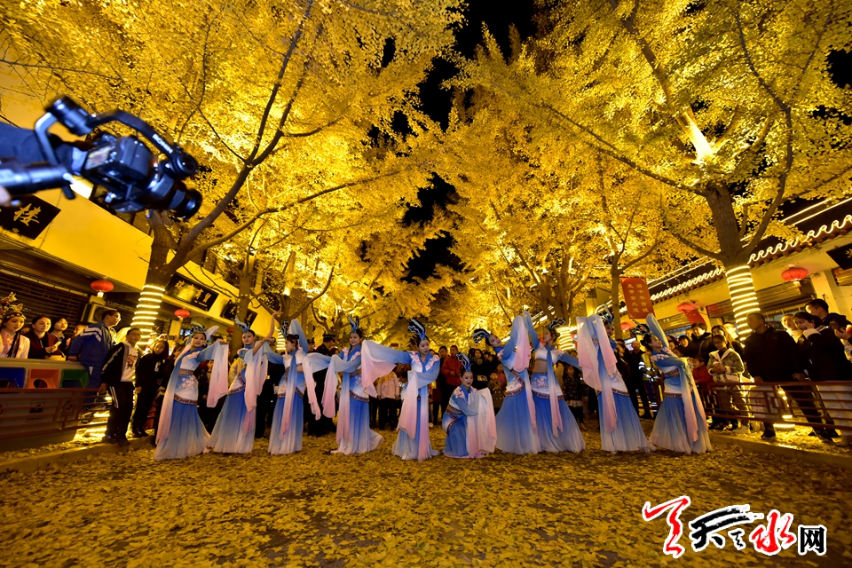 立冬之初,天水市秦州区的“网红”街一路飘黄又迎来了它的狂欢期,从白天至晚上,这里黄叶与自拍共舞,欢歌同开心齐飞。