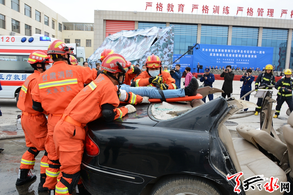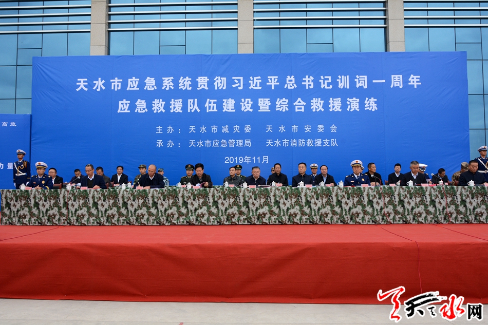 天天天水网讯【全媒体记者马哲】11月8日下午,我市举行2019年应急系统贯彻习近平总书记训词一周年应急救援队伍建设暨综合救援演练。市委书记王锐,省消防救援总队后勤部部长张鸿斌,省应急管理厅二级巡视员韩树君,市领导蒋晓强、张明泰、赵四辈出席演练活动,副市长董小平主持演练仪式。