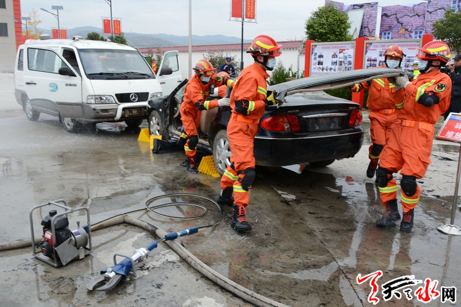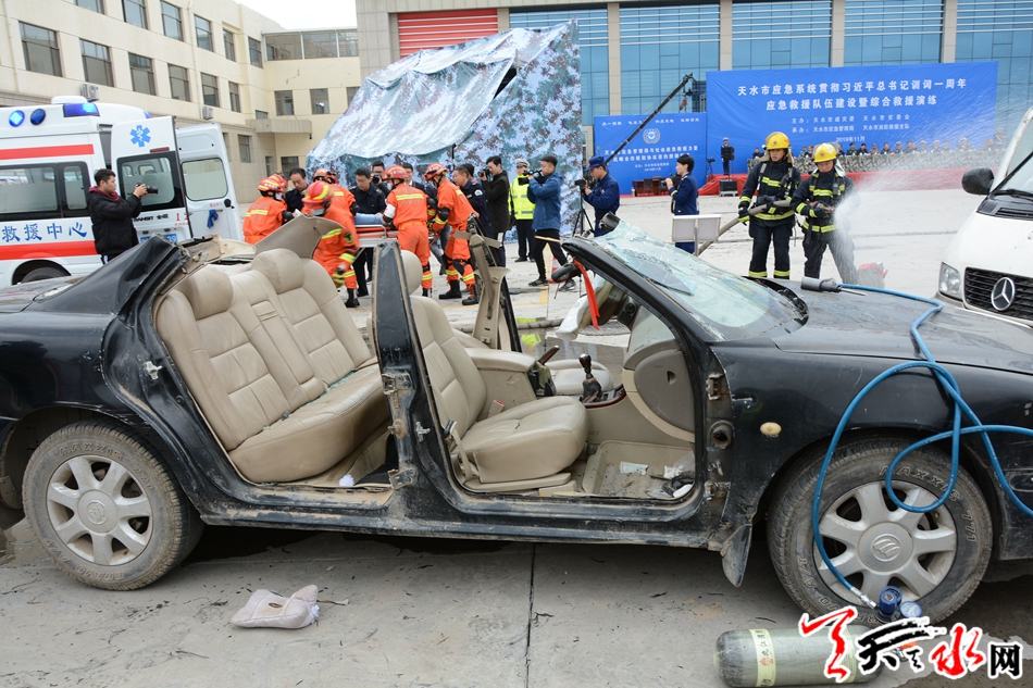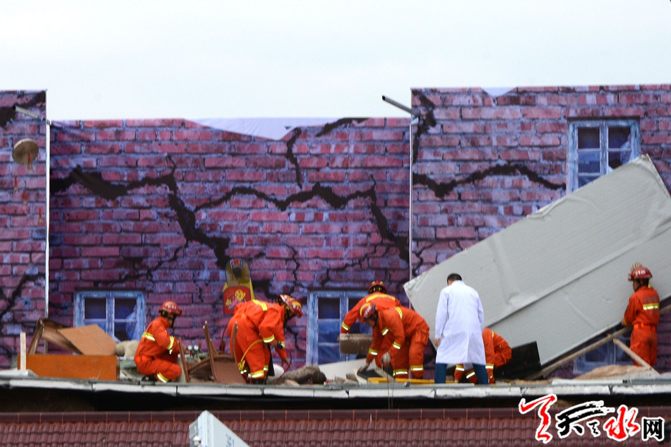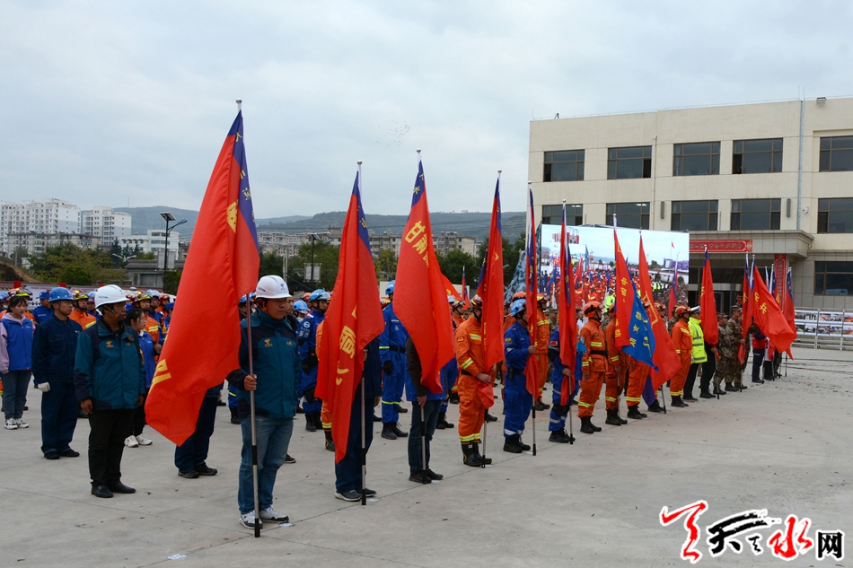 本次演练旨在深入学习贯彻习近平总书记授旗训词精神,检验天水市新型应急管理体系建设成效,展现全市应急救援队伍优良作风和战斗力。演练现场模拟天水市某县一乡镇发生5.8级地震,地震造成震中及周边地区部分房屋倒塌,有群众受伤,近百名群众急需疏散转移,同时地震引发多个次生灾害,情况万分危急。地震局监测到灾情后,立即开展震后灾情快速评估,同时向应急管理局报告灾情。