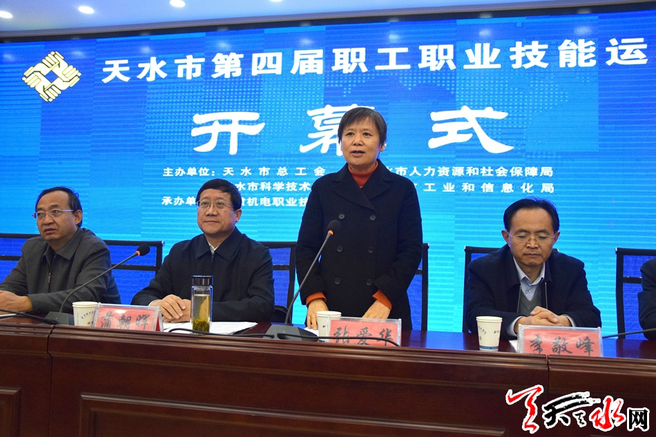 天天天水网讯【全媒体记者 李欣桐】11月7日至10日,2019年天水市第四届职工职业技能运动会在甘肃机电职业技术学院举行。市人大常委会副主任、市总工会主席蒲朝晖主持开幕式,省总工会副主席张爱华宣布运动会开幕,市政协副主席王振宇,市长助理李敬峰出席运动会开幕式。