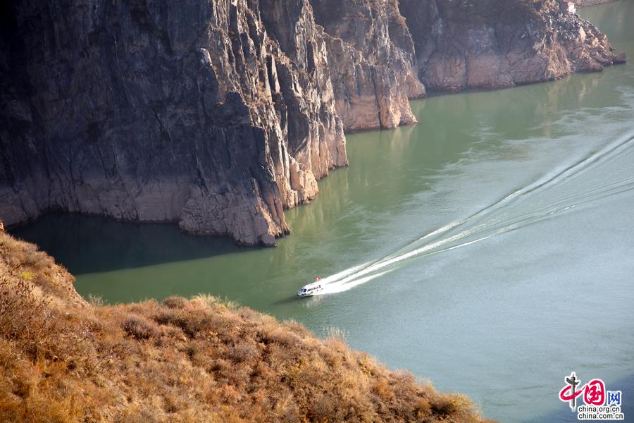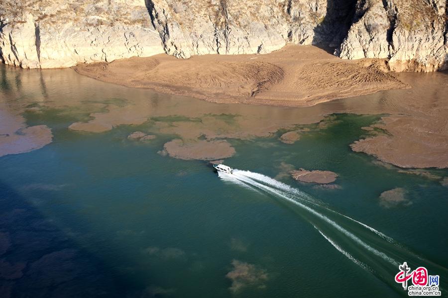 驶于洮河黄河交汇处的快艇 中国网 杨臻 摄