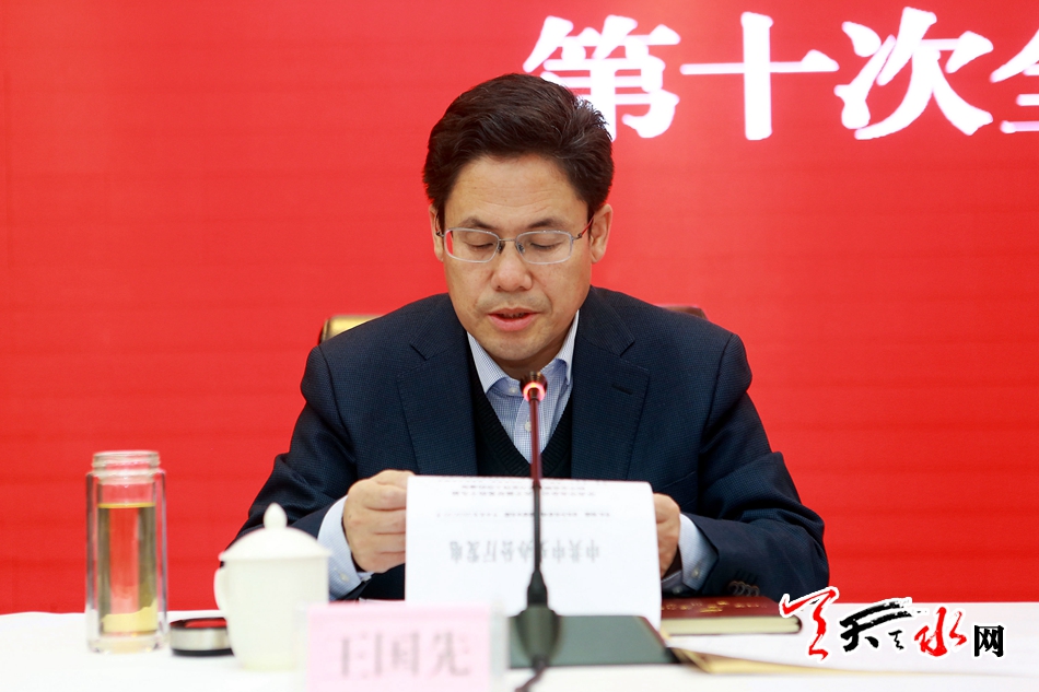 天天天水网讯【全媒体记者 吴丽娜】11月15日上午,中国共产党天水市第七届委员会第十次全体会议召开。会议深入学习贯彻党的十九届四中全会精神,全面贯彻习近平总书记视察甘肃重要讲话精神,贯彻落实省委十三届十次全会精神,动员全市各级党组织和党员干部群众,把思想和行动统一到党中央的决策部署上来,开拓进取、真抓实干,为谱写加快建设幸福美好新甘肃、不断开创富民兴陇新局面时代篇章做出应有贡献、实现更大作为。