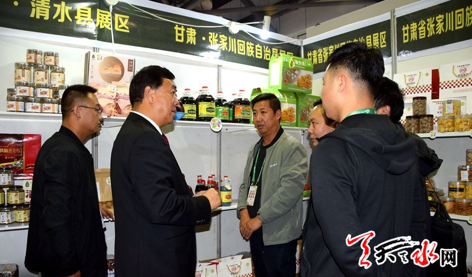 孙伟走进天水展厅,参观了天水特色农产品,了解了天水农业特色产业发展情况,对展厅布局给予肯定。他强调,要利用好这次农产品交易会搭建的良好平台,帮助农业企业开拓更广阔的市场空间,让更多中外客商了解甘肃,让甘肃农产品走向全国,走向世界。