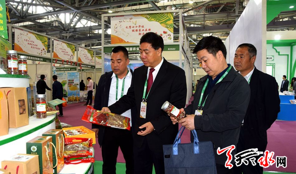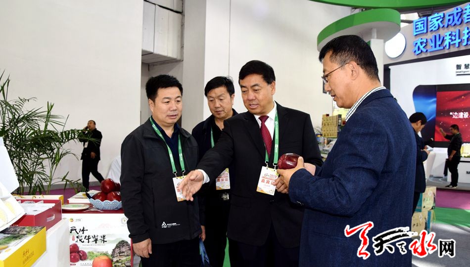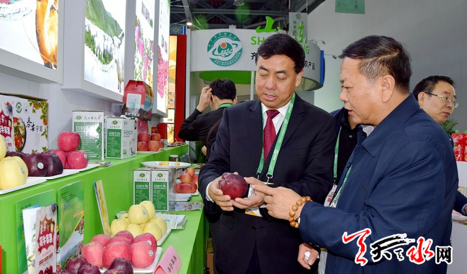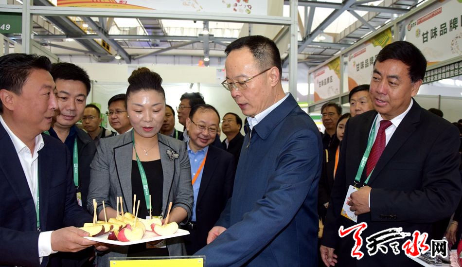 天天天水网讯 11月15日,由农业农村部、江西省政府主办的第十七届中国国际农产品交易会在南昌市隆重召开。甘肃省委副书记孙伟巡视了天水展厅,甘肃省委副秘书长王春江,甘肃省农业农村厅厅长李旺泽、副厅长周帮贵,江西省退役军人事务厅厅长欧阳泉华一同巡视。天水市副市长逯克宗带领市农业农村部门负责人及有关果品经销龙头企业、农民合作社负责人参加。