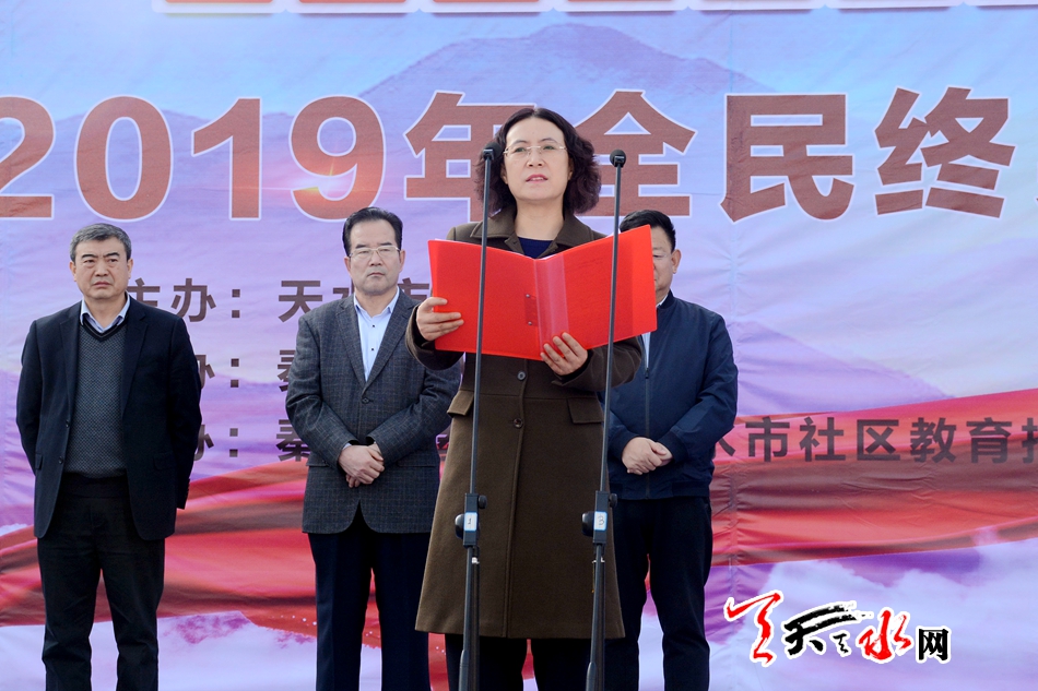 天天天水网讯【全媒体记者童强】11月15日,由市教育局、秦州区人民政府主办的“天水市暨秦州区2019年全民终身学习活动周”启动仪式在龙城广场举行。市委常委、宣传部部长张建杰宣布活动启动,副市长王燕出席仪式并讲话。