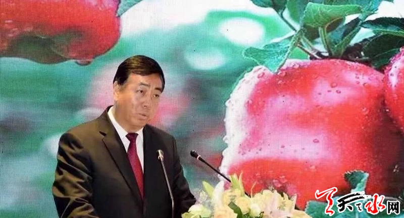 天水市副市长逯克宗对"天水花牛苹果"做了宣传推介。