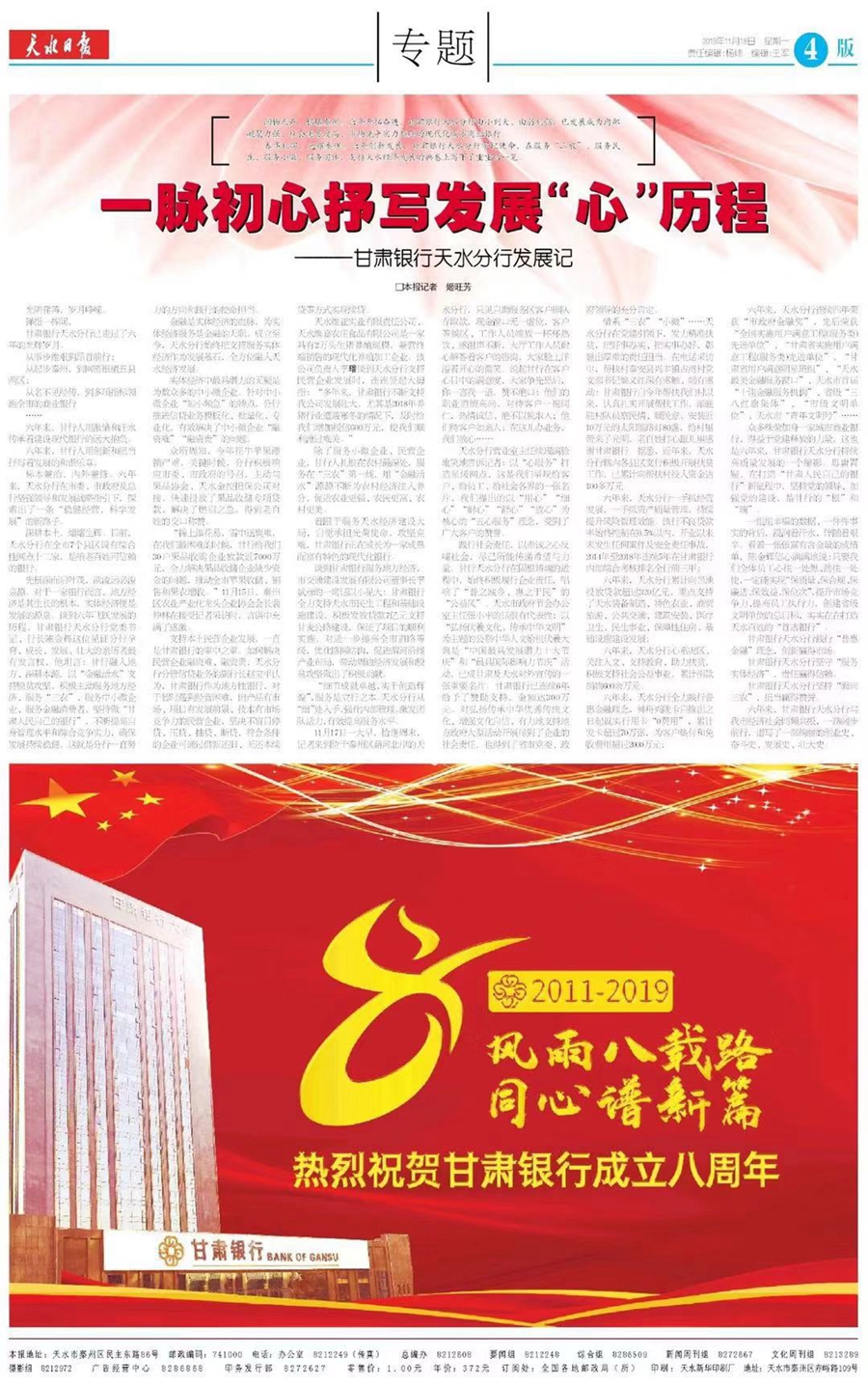 甘肃银行天水分行坚守“服务实体经济”,责任赢得信赖。