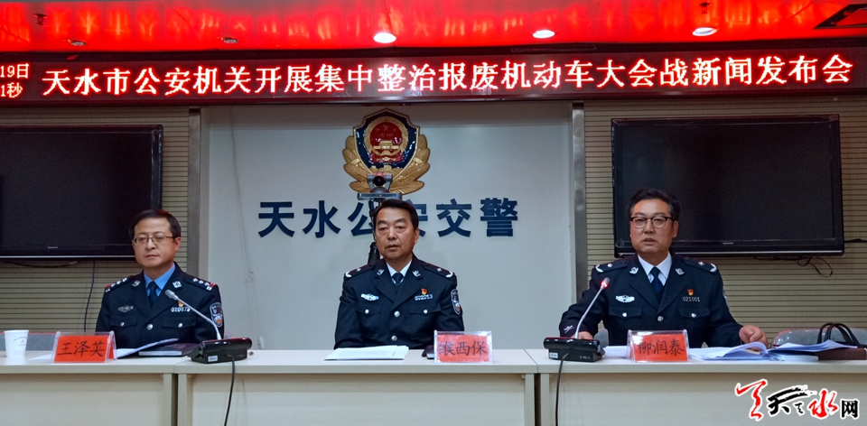 天天天水网讯【记者 张文都】为切实做好全市道路交通安全工作,彻底解决天水市报废机动车存量大、安全隐患突出的问题,为全市人民群众平安出行创造安全稳定的道路交通环境,按照省公安厅统一部署要求,11月 19 日下午,天水市公安局召开全市公安机关集中解决报废车辆隐患问题新闻发布会。