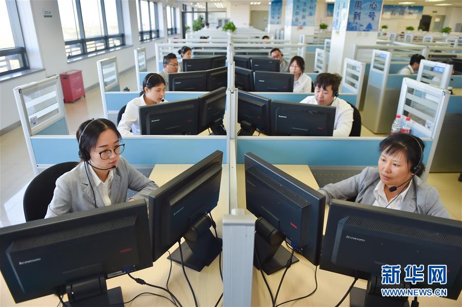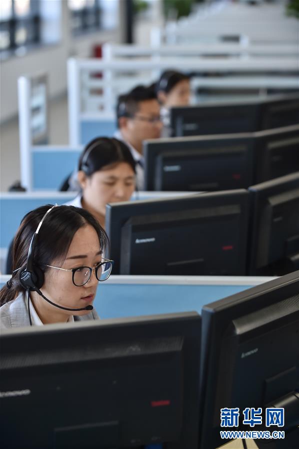 11月13日,在位于北京亦庄的12345市民热线话务大厅,工作人员在接听热线电话。 新华社发(彭子洋摄)
