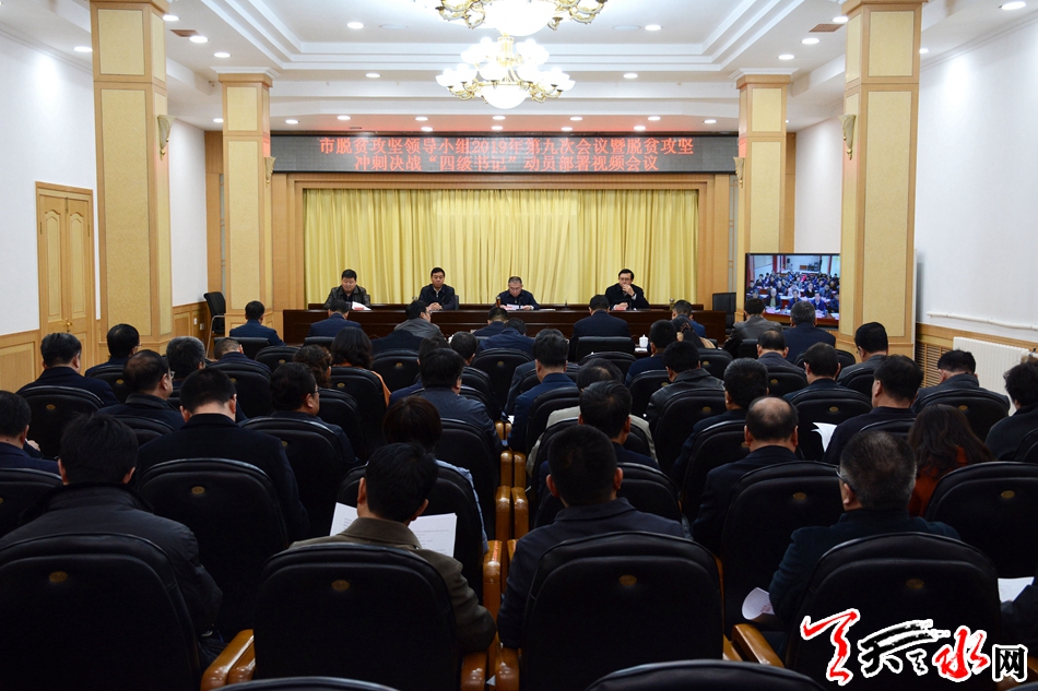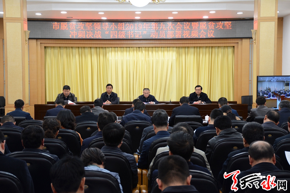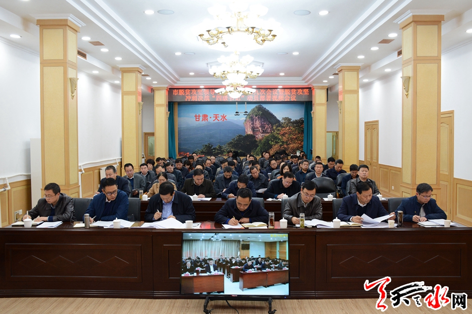 天天天水网讯【全媒体记者王晓馨】11月21日,市脱贫攻坚领导小组2019年第九次会议暨脱贫攻坚冲刺决战“四级书记”动员部署视频会召开。市委书记王锐在会上强调,要进一步坚定“不获全胜、绝不收兵”的信心和决心,继续保持“临战”状态,认真对照检查,确保各类问题整改清零,确保如期高质量打赢打好脱贫攻坚战。