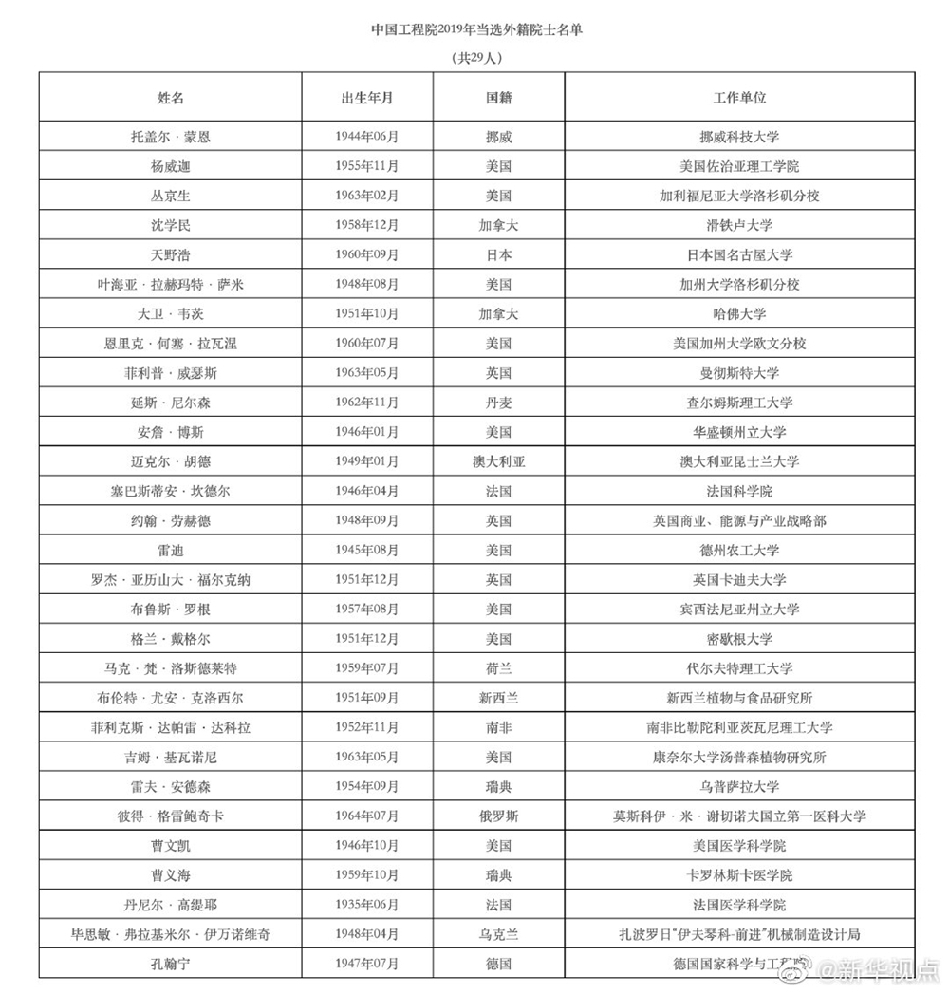 2019年,中国工程院开展了第14次院士增选和第13次外籍院士增选,共选举产生75位院士和29位外籍院士。具体名单快来看一下吧!