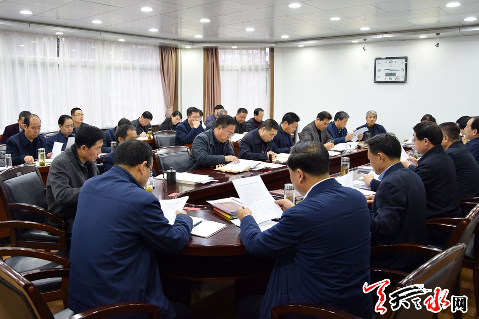 天天天水网讯【全媒体记者马放】11月22日,市七届人大常委会党组理论学习中心组围绕学习贯彻党的十九届四中全会精神开展专题学习研讨。市人大常委会党组书记蒋晓强主持会议。市人大常委会党组副书记蒲朝晖,党组成员宋建平、王晓琴、杨坤参加会议,市人大常委会副主任安志宏列席会议。
