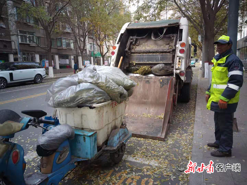 环卫工人清理落叶 新甘肃•甘肃日报记者 文洁摄