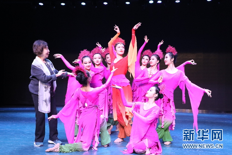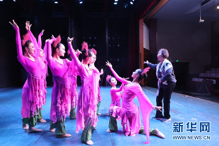 11月23日,敦煌舞教学创始人高金荣为兰州文理学院艺术职业学院敦煌舞蹈班的学生排练敦煌舞剧《沙漠红柳》。新华社记者郎兵兵 摄