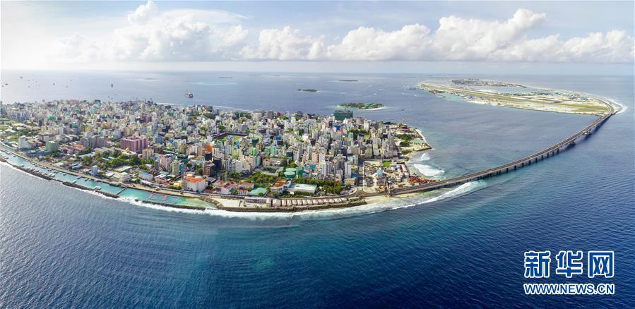 这是2018年8月22日拍摄的即将开通的中马友谊大桥,大桥连通马尔代夫首都马累和机场岛。新华社发(王明亮摄)