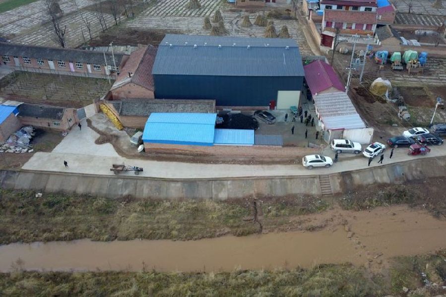 这是在天水市张家川回族自治县龙山镇冯塬村拍摄的非法生产染料的“黑作坊”(11月27日无人机拍摄)。新华社记者 范培珅 摄
