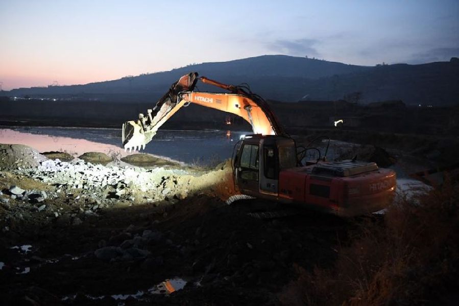 11月27日,在天水市张家川回族自治县龙山镇境内,当地政府组织工程机械修建临时围堰。新华社记者 范培珅 摄