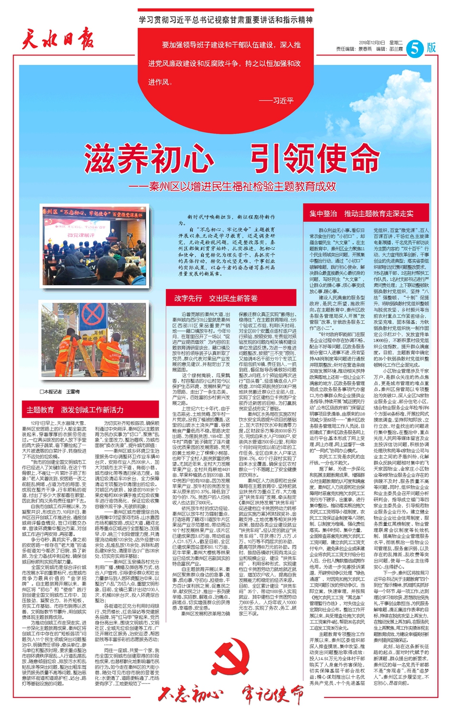 自“不忘初心、牢记使命”主题教育开展以来,无论是学习教育,还是调查研究,无论是检视问题,还是整改落实,秦州区都做到贯穿始终、扎实推进,把初心和使命,自觉转化为埋头苦干、真抓实干的具体行动,转化为攻坚克难、干事创业的实际成果,以奋斗者的姿态谱写秦州高质量发展的新篇章。